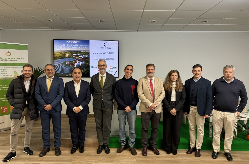 La Asociación Regional de Zonas Industriales de Castilla-La Mancha (ZINCAMAN) ha acogido en su sede del Parque Empresarial Campollano la jornada “Autoconsumo Térmico: Redes de Calor para la Industria”, organizada junto a la Consejería de Desarrollo Sostenible y con la colaboración de la Asociación Española para la Promoción de la Industria Termosolar (PROTERMOSOLAR), Instituto para la Diversificación y Ahorro de la Energía (IDAE) e Instituto de Sistemas Fotovoltaicos de Concentración (ISFOC). El encuentro, que ha reunido a empresas, expertos y representantes institucionales, ha puesto el foco en el potencial del calor renovable y, en particular, de la energía solar térmica de concentración (CST) para avanzar en la descarbonización de los procesos industriales.